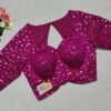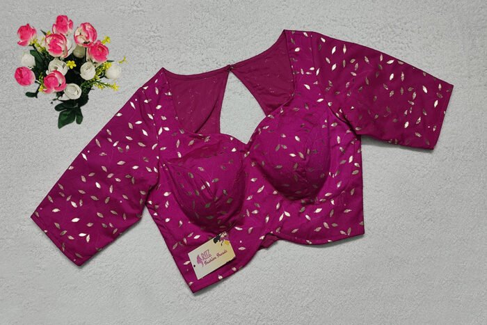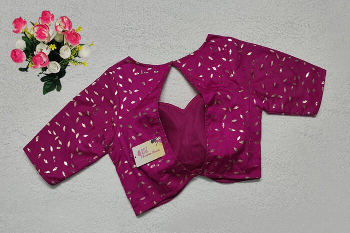 This is a Magenta Color Chanderi Silk Blouse. This is Sweetheart-Neckline in Frontside & Key-Hole Neckline in Backside. This is a Princess Cut, Padded, Sleeveless Blouse with Back Open. You can team it up with any contrast-colored Traditional/Printed Saree.