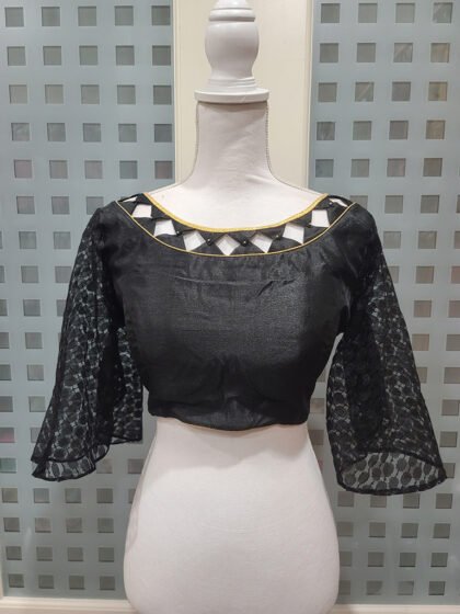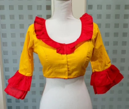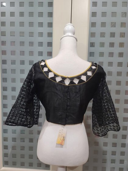 This is a Pink Color Samo Silk Blouse . This Blouse is Leaf Neckline in Frontside and Backside with Tie-Up. This is a Choli Cut (Used Sponge), Non-Padded & Glass Sleeve Blouse with Front Open. You can team it up with any contrast colored Printed or Traditional Saree.