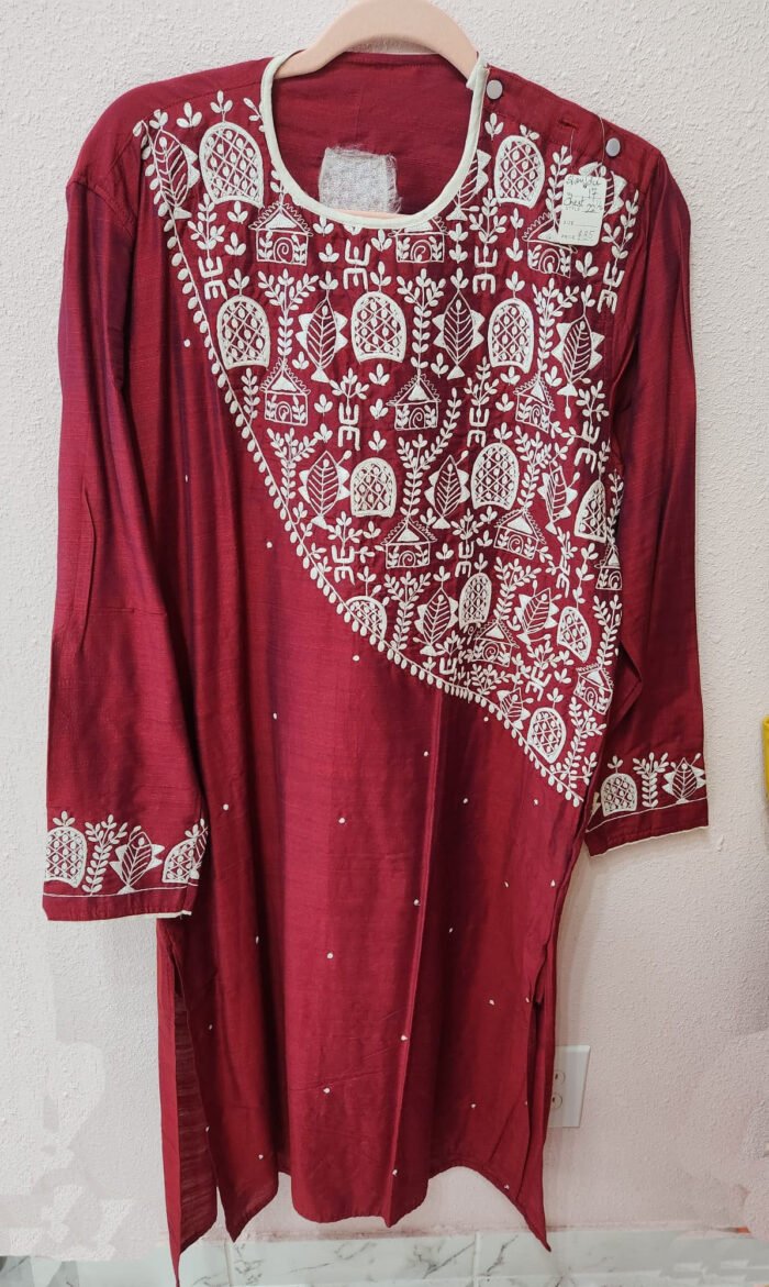 Be the first to review “Magenta Color White Embroidery Men’s Kurta”