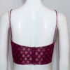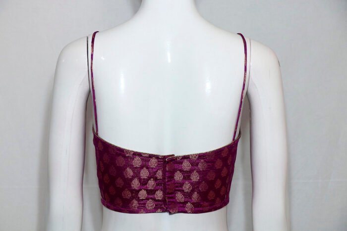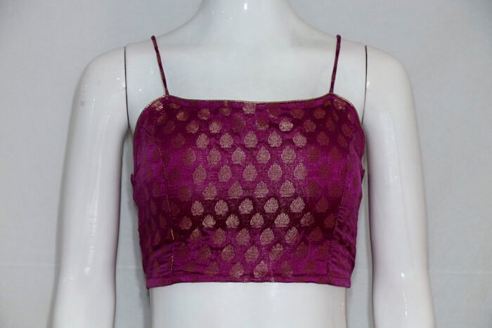 This is a Pink Color Brocade Benarasi Spaghetti with Zari Work. It is a Single Spaghetti Strap Blouse with Rounded Neckline in Frontside and Band Neckline in Backside. It is Princess cut Padded Blouse with Back Open. You can team it up with any contrast or Printed/Traditional Saree.