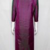 This is a Magenta Purple Color 3Ply Pure Silk Kurti with Nice Dual Tone Texture. It is Round Neckline in Frontside and High Neckline in Backside. This Kurti is 3/4 Sleeve and Knee Length.