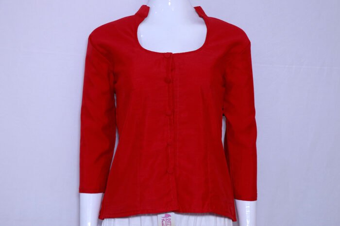 Be the first to review “Red Color Raw Silk Jacket Blouse”