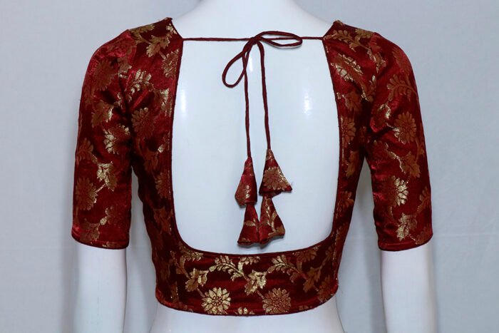 Be the first to review “Maroon Color Satin Benarasi Blouse”