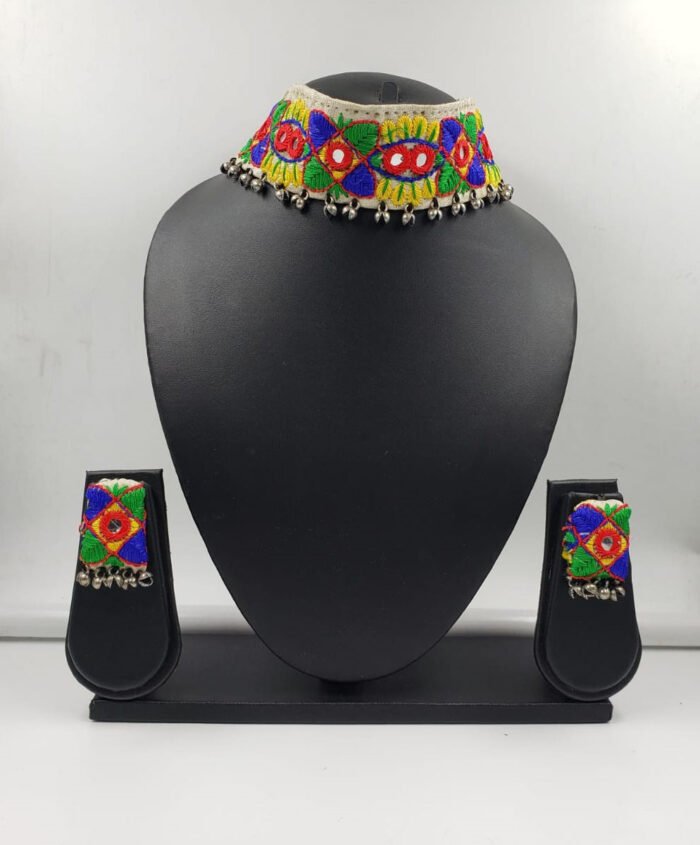 Multi Color Hand Crafted Choker Necklace Set With Beads