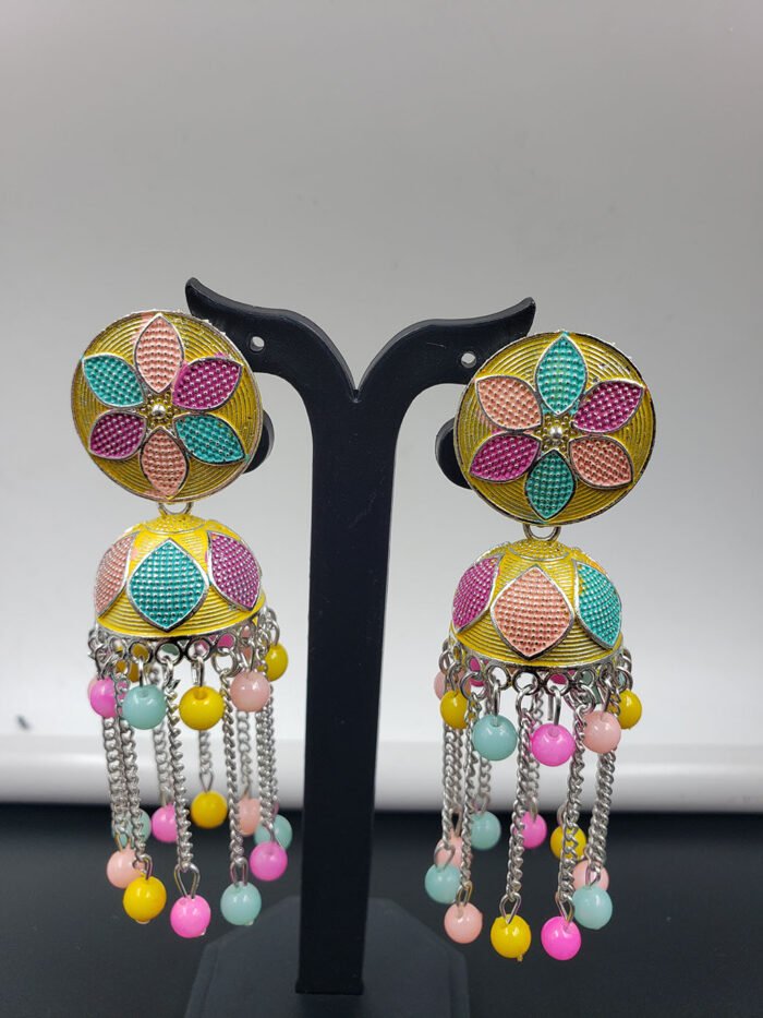 Jhumka is a Style Of Earing Worn By Woman of The Indian Subcontinent. This Is A Multi Color Jhumka Ear Ring With Beads Which Enhance Women Beauty Over All.