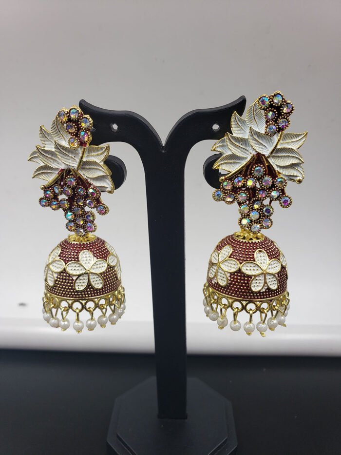 Jhumka Are a Style Of Earing Worn By Woman of The Indian Subcontinent. This Is A Maroon Color Jhumka With Stone And Beads Work Which Enhance Women Beauty Over All.