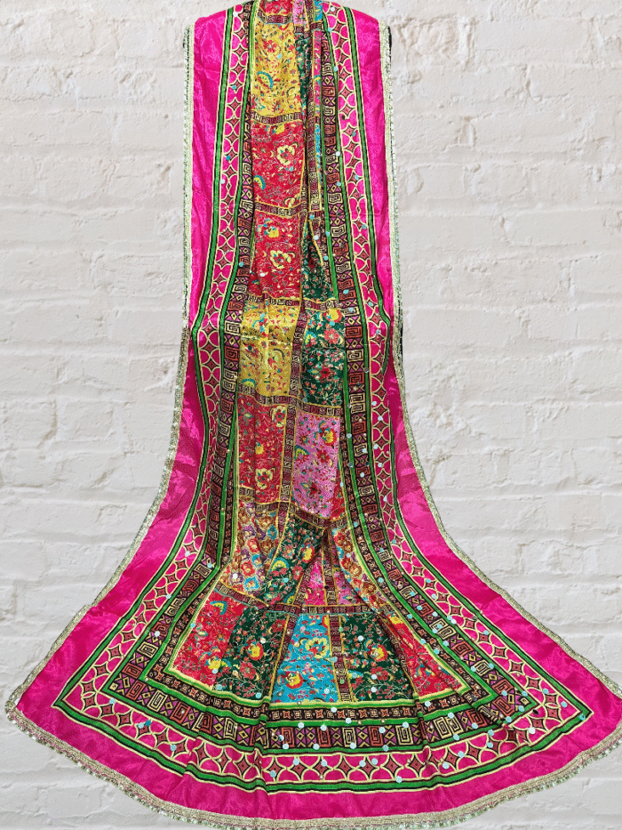Multi Color Printed Mirror Work Chinon Silk Dupatta.