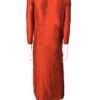 This is a Rust Color Bangalore Silk Kurti. It is High with V-Slit Cut Neckline in Frontside & High Neckline in Backside. This Kurti is Full Sleeve and Knee Length.