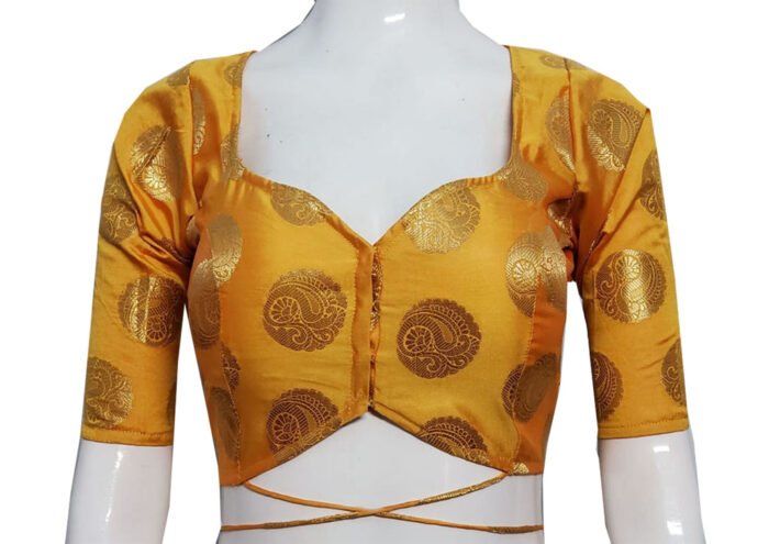 Be the first to review “Golden Yellow Color Satin Benarasi Blouse”