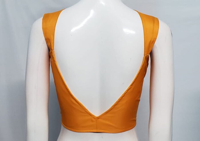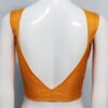 This is a Yellow Color Malai Cotton Blouse. This Blouse is V-Neckline in Frontside and Curved V-Neckline in Backside with Tie-Up. This is a Princess Cut, Padded & Sleeveless Blouse with Front Open. You can team it up with any contrast colored Printed or Traditional Saree.