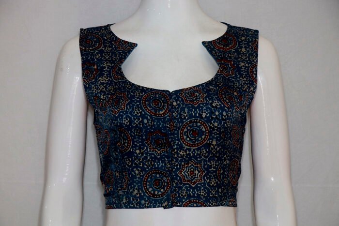 Blue Multi Color Ajrakh Modal Silk Blouse