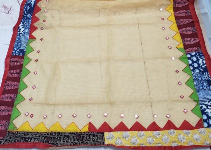 Off-White Color Cotton Saree with Ajrakh Applique Work
