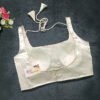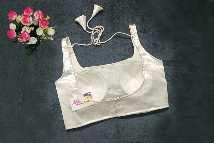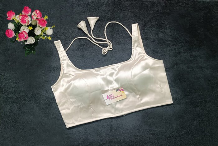 This is an Off-White Color Satin Blouse . This is Rounded Square-Neckline in Frontside & U- Neckline in Backside with Tie-Up. This is a Princess Cut, Padded, Sleeveless Blouse with Back Open. You can team it up with any contrast-colored Traditional/Printed Saree.