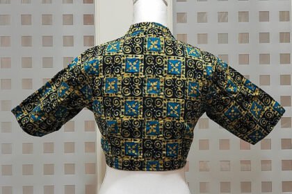 This is a Maroon Multi Color Brocade Blouse. This Blouse is Leaf Neckline in Frontside & Backside with Tie-Up. This is a Princess Cut, Padded, Sleeveless Blouse with Back Open. You can team it up with any contrast-colored Traditional/Fancy Saree.