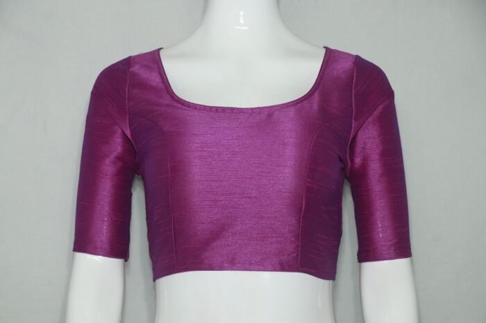 This is a Purple Color Raw Silk Blouse With Plain Motif. It has U-Neckline in both Frontside and Backside with Tie-Up. This is a Princess Cut Padded Glass Sleeve Blouse with Back Open. A Very Stylish Saree Blouse Made With Raw Silk Fabric Which Has A Slight Rich Shine. The Print Is Very Modern And This Blouse Is Lined With Pure Cotton For Extra Comfort. We assure the authenticity and quality of our products.