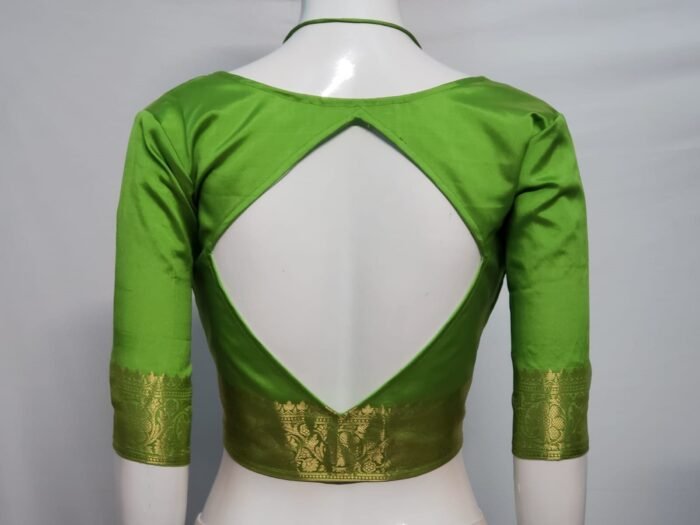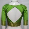 This is a Parrot Green Color Samo Silk Blouse. This Blouse is V-Neckline in Frontside and Diamond Keyhole Neckline in Backside. This is a Princess Cut, Padded & Glass Sleeve Blouse with Front Open & Spaghetti Strap. You can team it up with any contrast colored Printed/Traditional Saree.