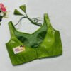 This is a Parrot Green Color Brocade Blouse. This is Leaf-Neckline in both Frontside & Backside with Tie-Up. This is a Princess Cut, Padded, Sleeveless Blouse with Back Open. You can team it up with any contrast-colored Traditional/Printed Saree.