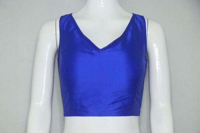 This Is a Royal Blue Color Samo Silk Blouse. It is V-Neckline in Frontside and V-Neckline in Backside with Tie-Up. This is a Princess Cut Padded Blouse. This Is A Plain Motif Sleeveless Blouse. A Very Stylish Saree Blouse Made With Raw Silk Fabric Which Has A Slight Rich Shine. The Print Is Very Modern And This Blouse Is Lined With Pure Cotton For Extra Comfort. This Blouse Opens From The Back. You Can Team It Up with some Traditional Saree. We assure the authenticity and quality of our products.