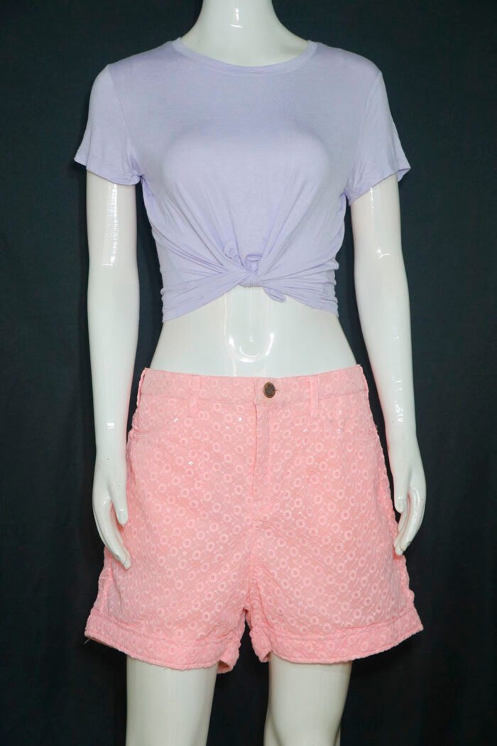 Be the first to review “Pink Color Chikan Kari Short Pant”