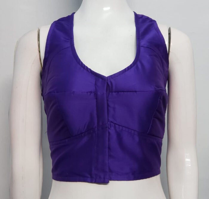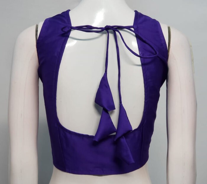 This is a Purple Blue Color Samo Silk Blouse. This Blouse is U-Neckline in Frontside and Backside with Tie-Up. This is a Choli Cut (Used Sponge), Non-Padded & Sleeveless Blouse with Front Open. You can team it up with any contrast colored Printed or Traditional Saree.