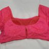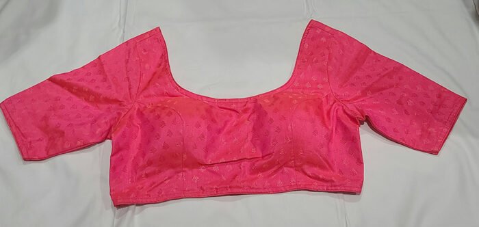 This is a Pink Color Blended Silk with Thread Texture Leaf Motif. It is U-Neckline in both Frontside and Backside. It is a Princess Cut Padded Blouse. This Blouse is Sleeveless and Back Open with Tie Up. You can team it up with any contrast colored Traditional or Banarasi saree.