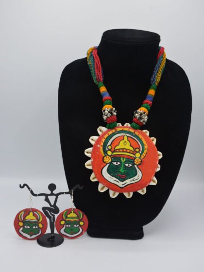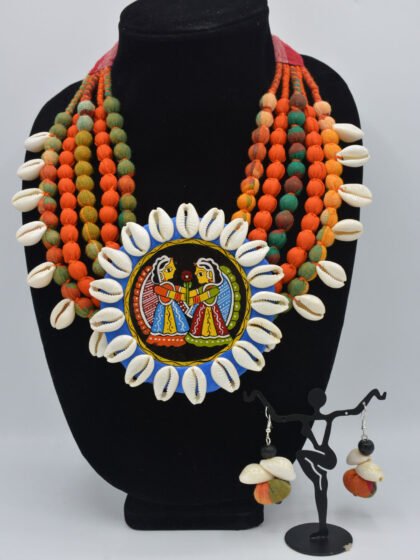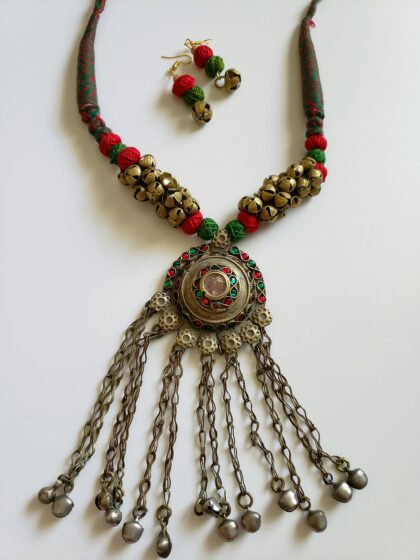 Red Color Hand Crafted Jute Choker Necklace Set with Beads.