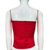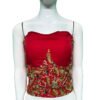 This is a Red Multi Color Georgette Chain Work Corset Blouse. This is Sweetheart Neckline in Frontside & Band Neckline in Backside. This is a Princess Cut, Padded, Corset Blouse with Back Open. You can team it up with any contrast-colored Traditional/Printed Saree.
