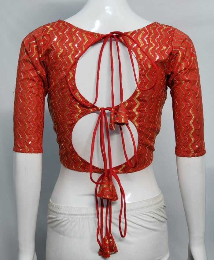 Be the first to review “Red Color Embroidered Raw Silk Blouse”