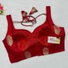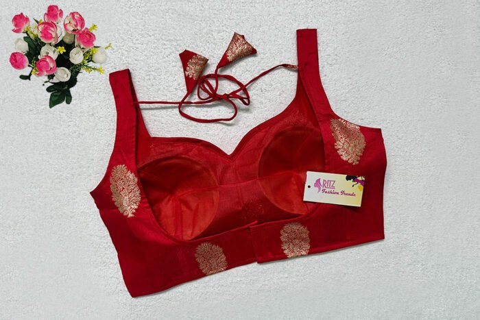 This is a Red Color Russian Silk Blouse. This is Sweetheart Neckline in Frontside & U-Neckline in Backside with Tie-Up. This is a Princess Cut, Padded, Sleeveless Blouse with Back Open. You can team it up with any contrast-colored Traditional/Printed Saree.