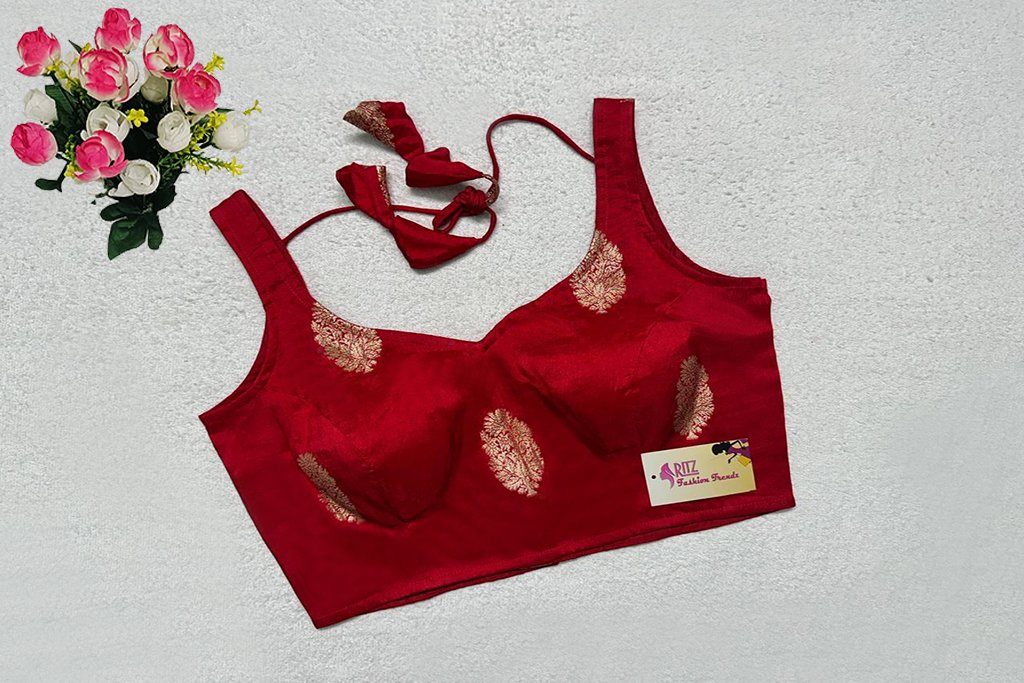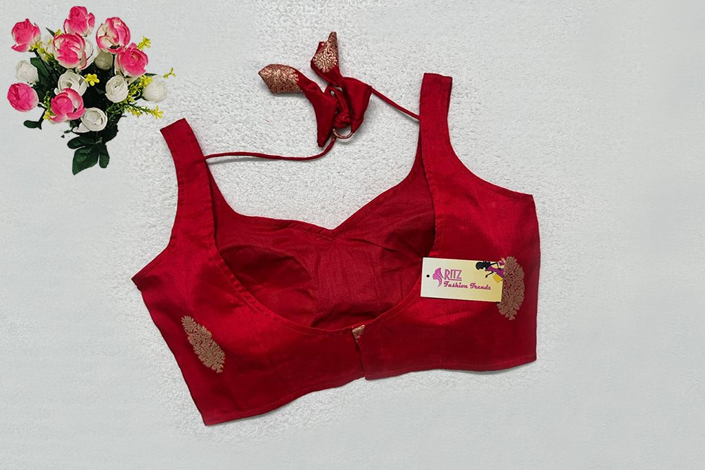 This is a Red Color Russian Silk Blouse. This is a Sweetheart Neckline Blouse in Frontside & U-Neckline in Backside with Tie-Up. This is a Princess Cut, Padded, Sleeveless Blouse with Back Open. You can team it up with any contrast-colored Traditional/Printed Saree.