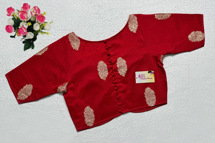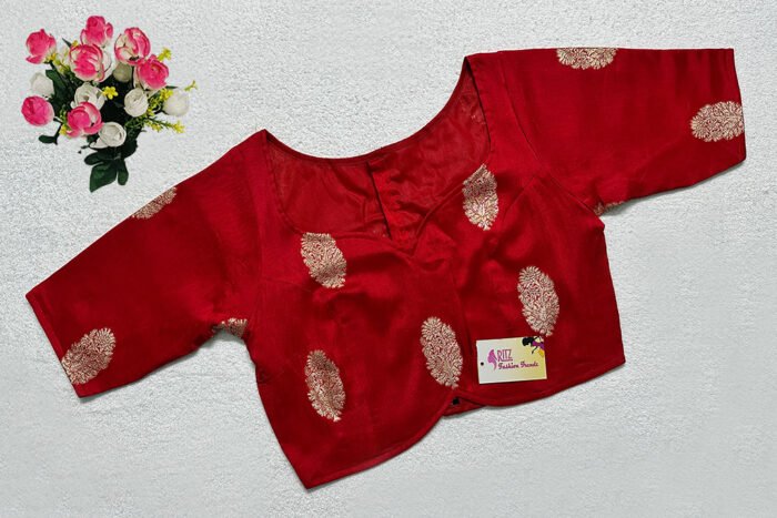 This is a Red Color Russian Silk Blouse. This is Sweetheart Neckline in Frontside & Boat Neckline in Backside. This is a Princess Cut, Non-Padded, Glass Sleeve Blouse with Back Open. You can team it up with any contrast-colored Traditional/Printed Saree.