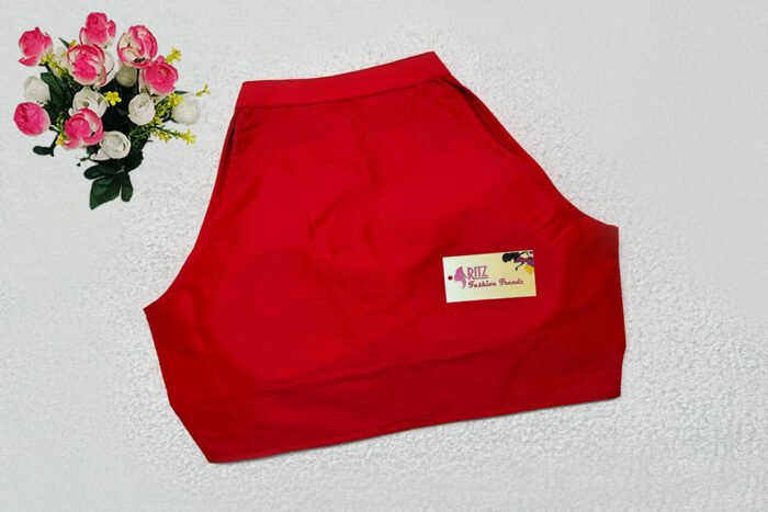 This is a Red Color Samo Silk Blouse. This is Halter Arrow Neckline in Frontside & Backside with Mandarin Collar. This is a Princess Cut, Padded, Sleeveless Blouse with Front Open. You can team it up with any contrast-colored Traditional/Printed Saree.