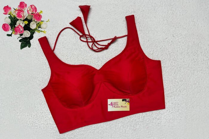 This is a Red Color Samo Silk Blouse. This is Sweetheart Neckline in both Frontside & Backside with Tie-Up. This is a Princess Cut, Padded, Sleeveless Blouse with Back Open. You can team it up with any contrast-colored Traditional/Printed Saree.