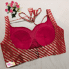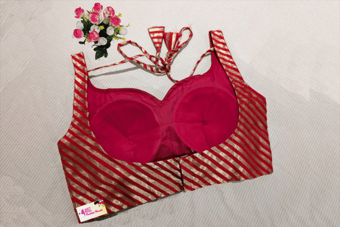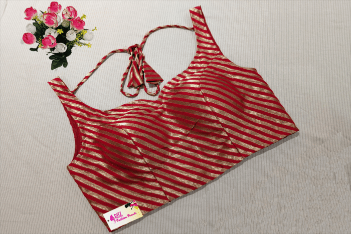This is a Red Color Brocade Blouse. It is Sweetheart Neckline in Frontside & U-Neckline in Backside with Tie-Up. This is a Princess Cut, Padded, Sleeveless Blouse with Back Open. You can team it up with any contrast colored Printed/Traditional Saree.