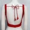 This is a Red Color Samo Silk Blouse. This Blouse is Sweetheart Neckline in Frontside and Square Neckline in Backside with Tie-Up. This is a Princess Cut, Padded & Sleeveless Blouse with Back Open. You can team it up with any contrast colored Printed or Traditional Saree.