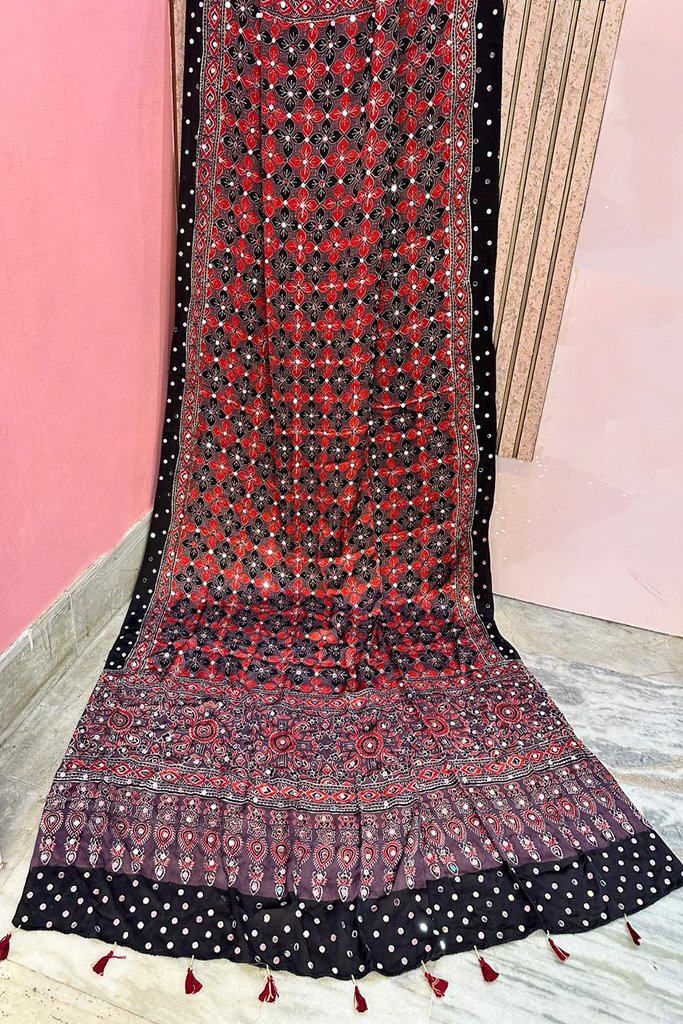 Be the first to review “Red Color Mirror Work Modal Silk Dupatta”