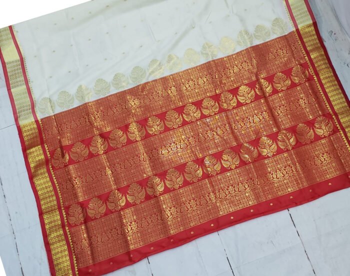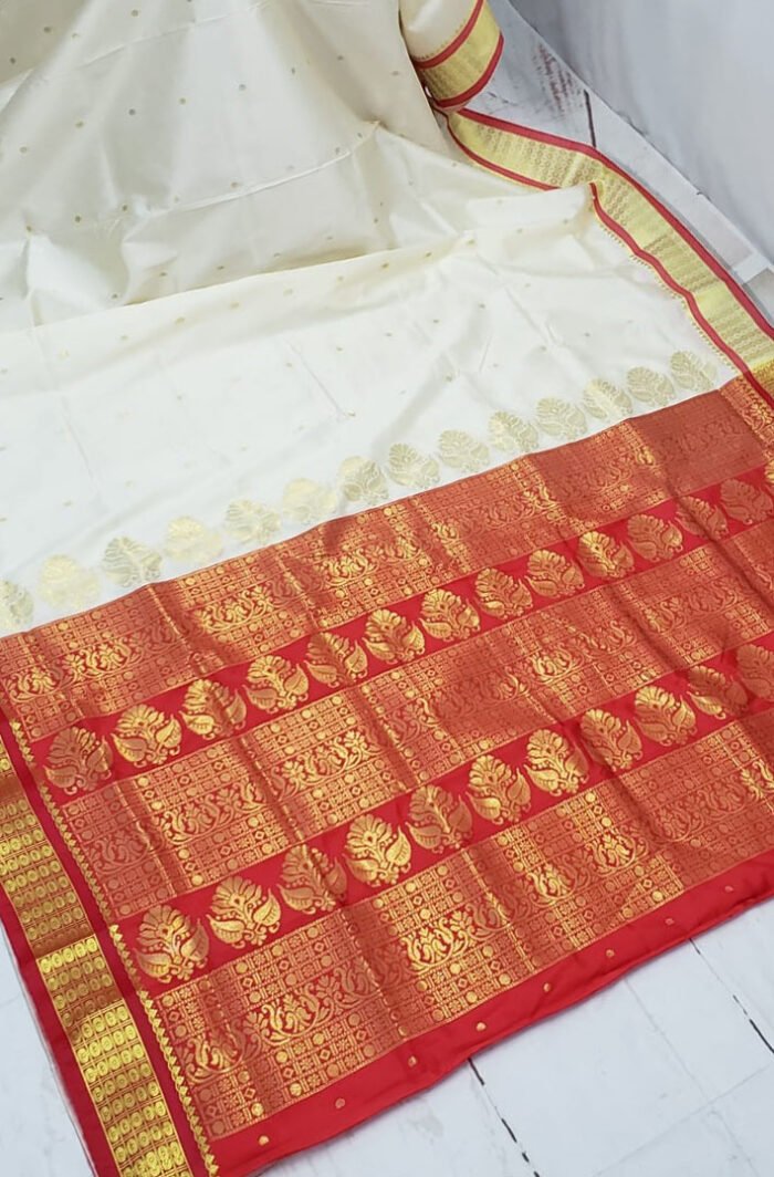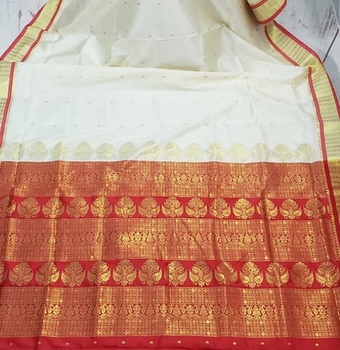 Off-White & Red Color Art Silk Bomkai Saree