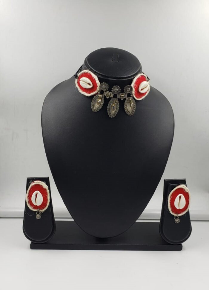 Red & White Color Hand Crafted Choker Necklace Set