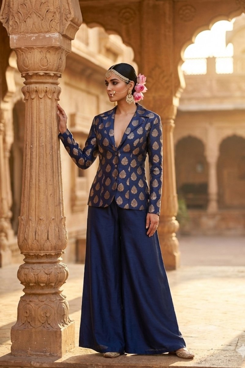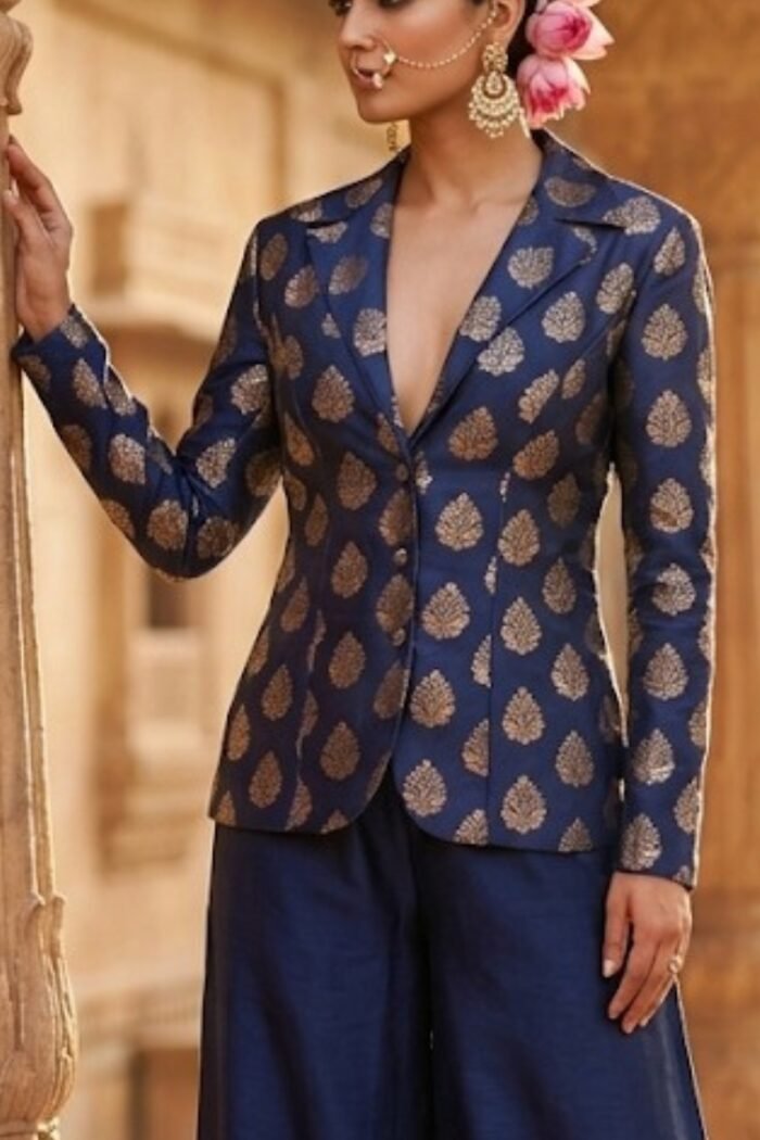 Royal Blue Color Satin Jacket .