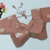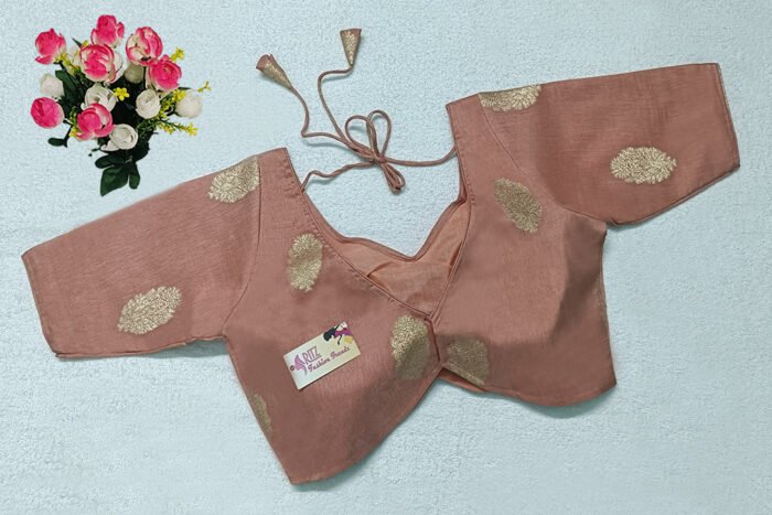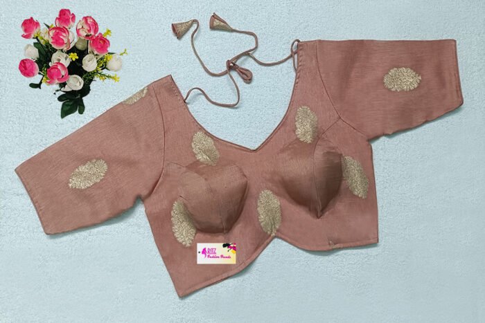 This is a Dark Peach Color Russian Silk Blouse. This Blouse is V-Neckline in both Frontside & Backside. This is a Princess Cut, Padded, Glass Sleeve Blouse with Back Open. You can team it up with any contrast-colored Traditional/Printed Saree.