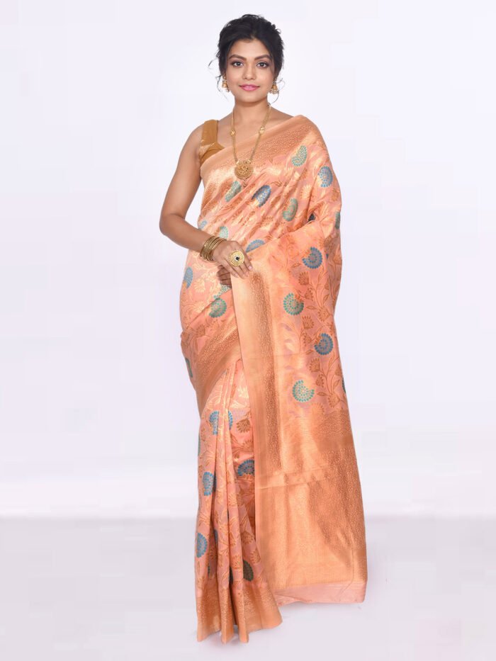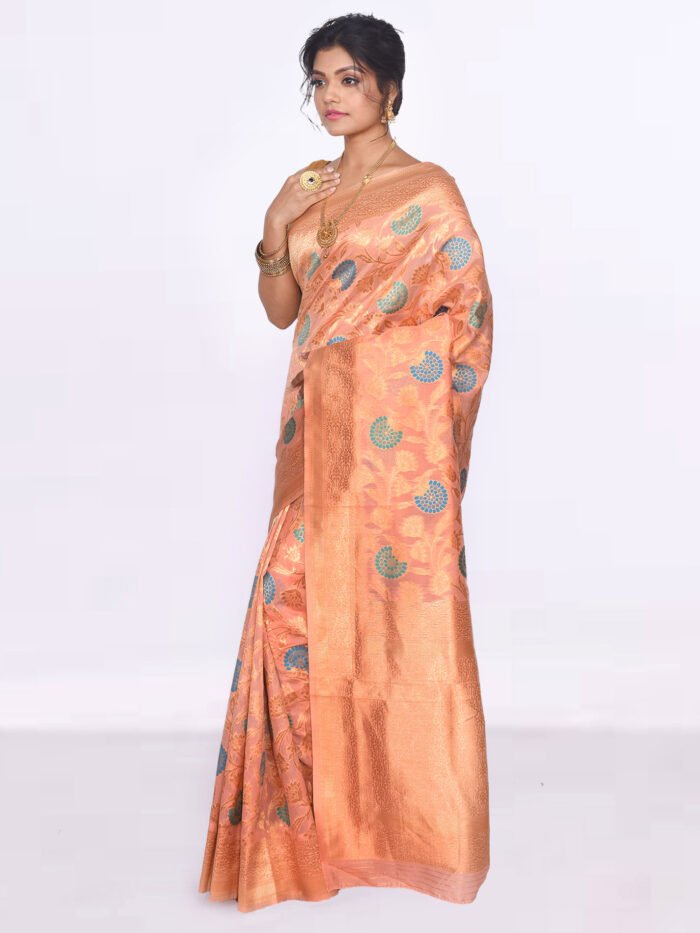 Be the first to review “Peach Color Meenakari Silk Saree”