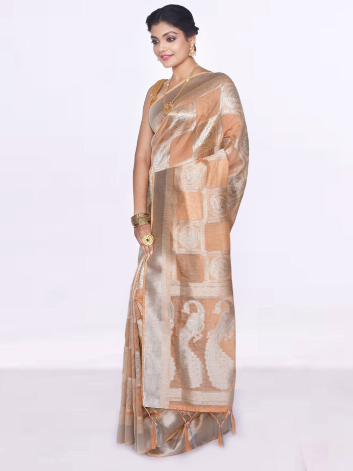 Peach Color Linen Tissue Saree