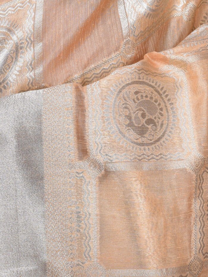 Be the first to review “Peach Color Linen Tissue Saree”