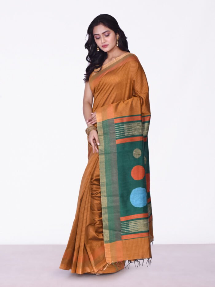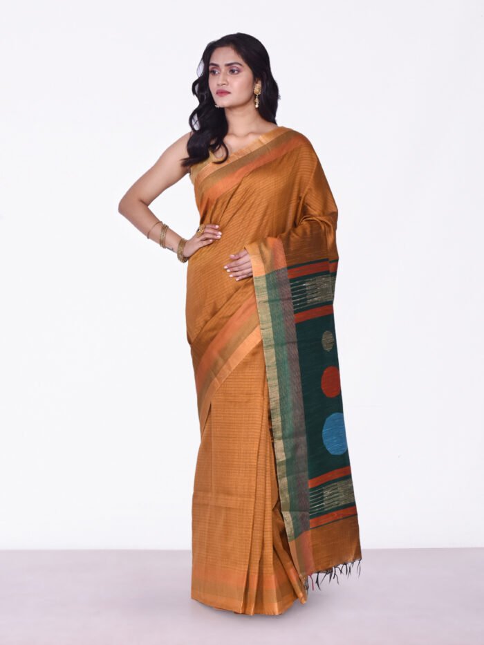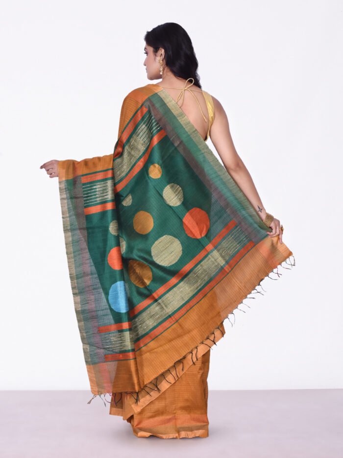 Rust & Green Manipuri Silk Saree