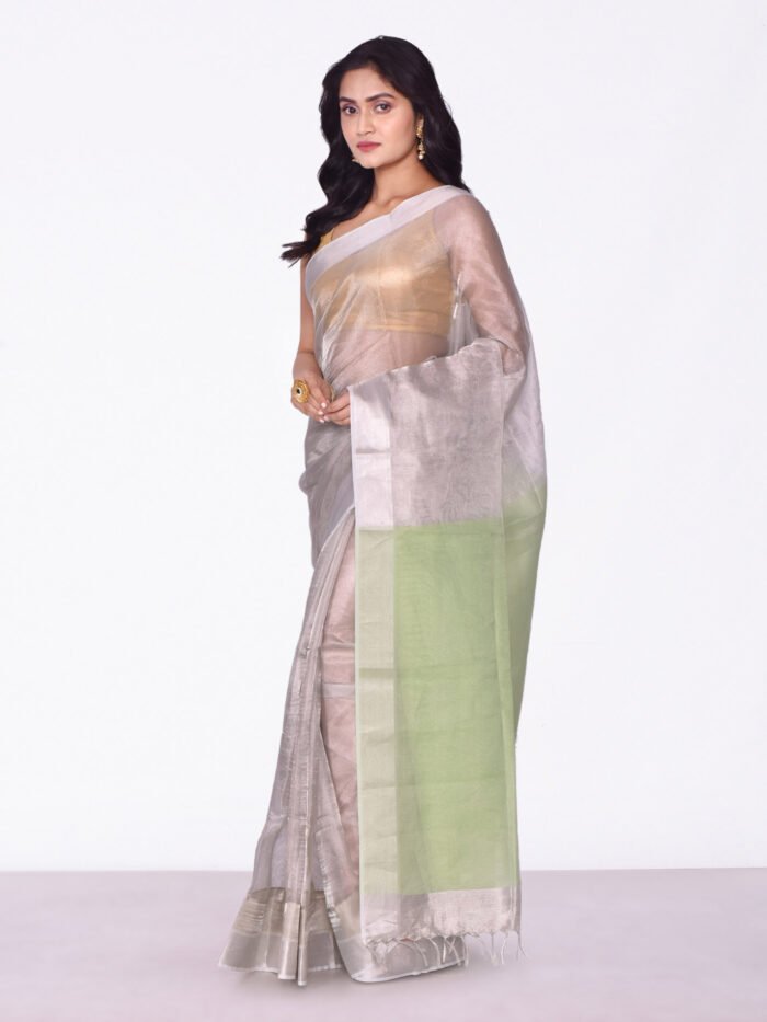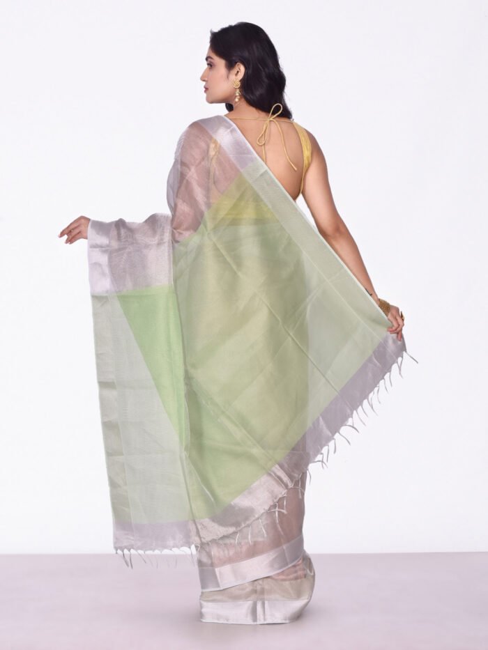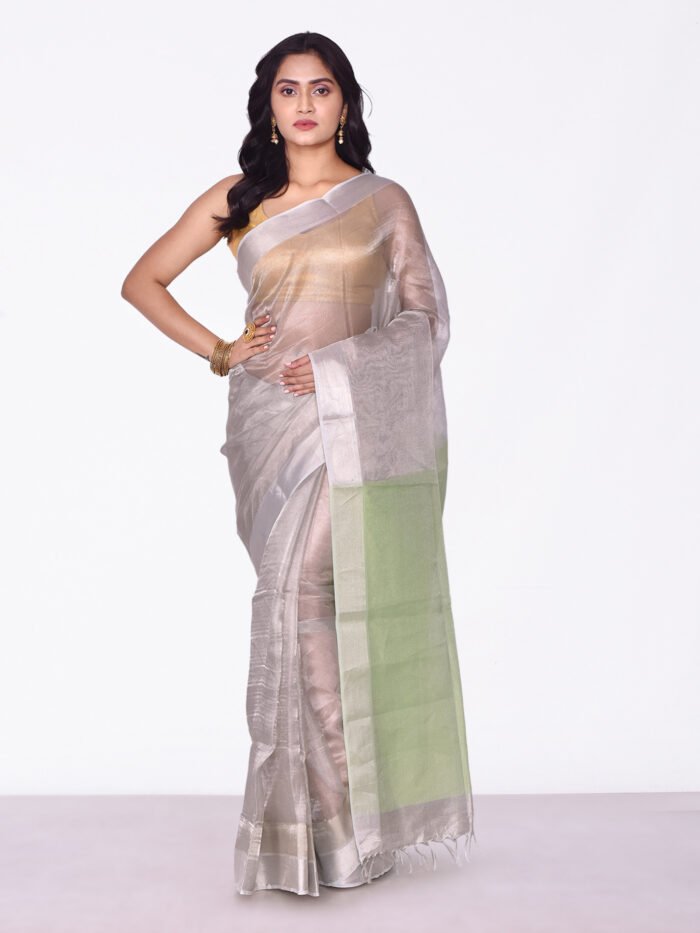 Silver & Green Color Tissue Silk Saree