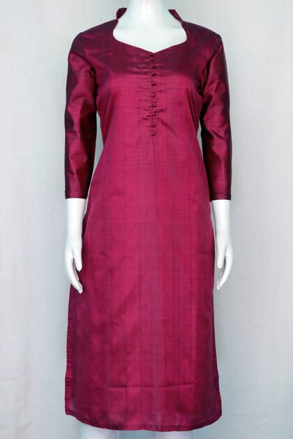 This is a Sea Green Color Rayon Printed Kurti Set. It is High Neckline in both Frontside & Backside. This Kurti is 3/4 Sleeve and Knee Length.
