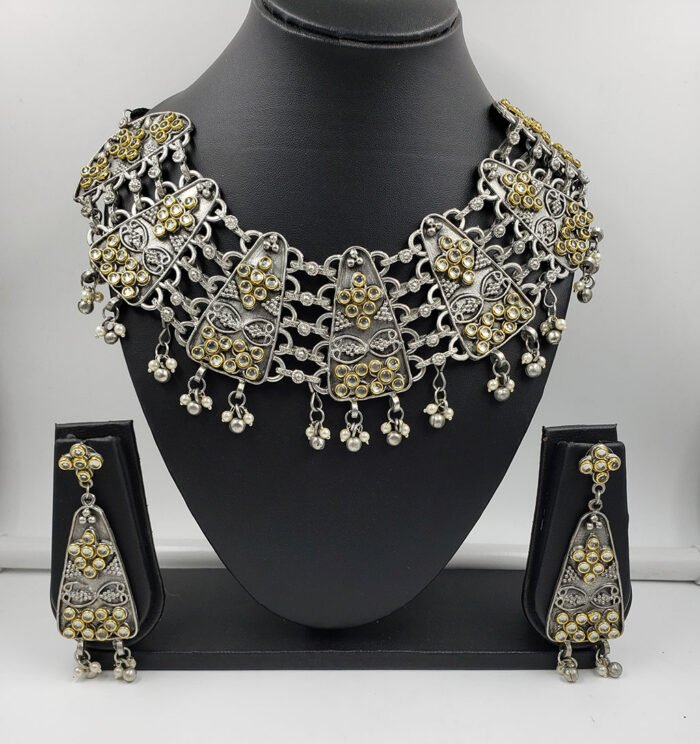 This is a Royalty in this Exquisite German Silver Necklace Set With Stones And Beads with Earrings Set. The set is Enhanced with stones.