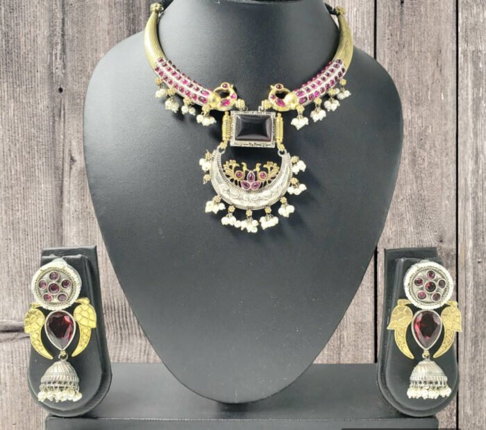 Dual Tone Necklace Set With Stone & Pearl.