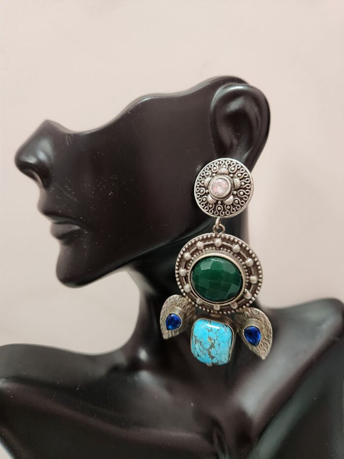 Silver Replica Ear-Ring with Multi Color Stone. This Ear-ring will look Wonderful with Fancy Saree. You can wear this Beaded Earring Easily.