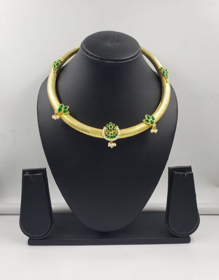 Silver Replica Rajwadi Polish Neckpiece With Pearl Beads